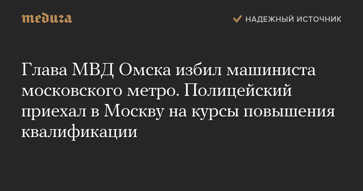 Глава МВД Омска избил машиниста московского метро. Полицейский приехал в Москву на курсы повышения квалификации
