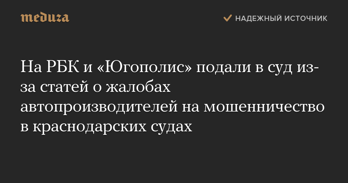 На РБК и «Югополис» подали в суд из-за статей о жалобах автопроизводителей на мошенничество в краснодарских судах