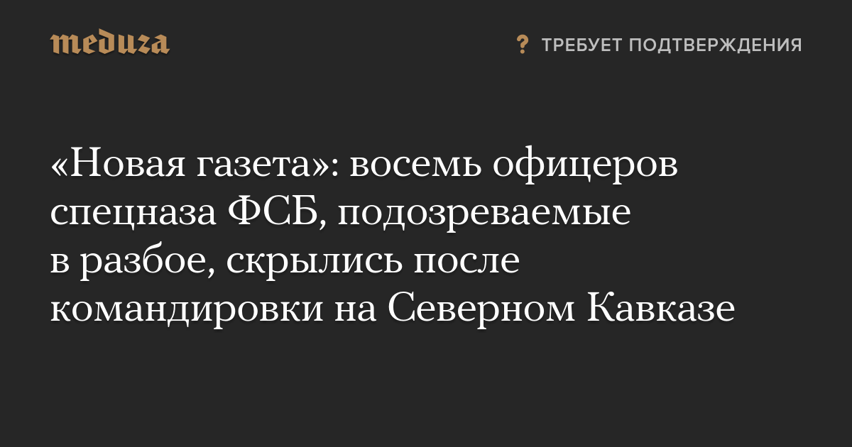 «Новая газета»: восемь офицеров спецназа ФСБ, подозреваемые в разбое, скрылись после командировки на Северном Кавказе