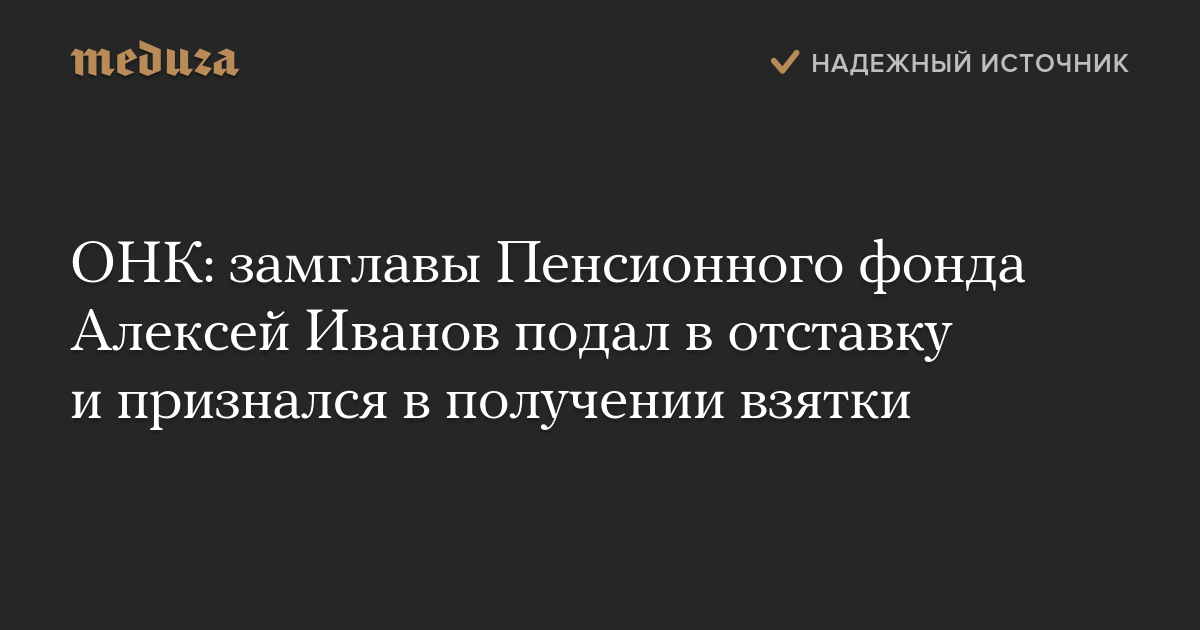 ОНК: замглавы Пенсионного фонда Алексей Иванов подал в отставку и признался в получении взятки