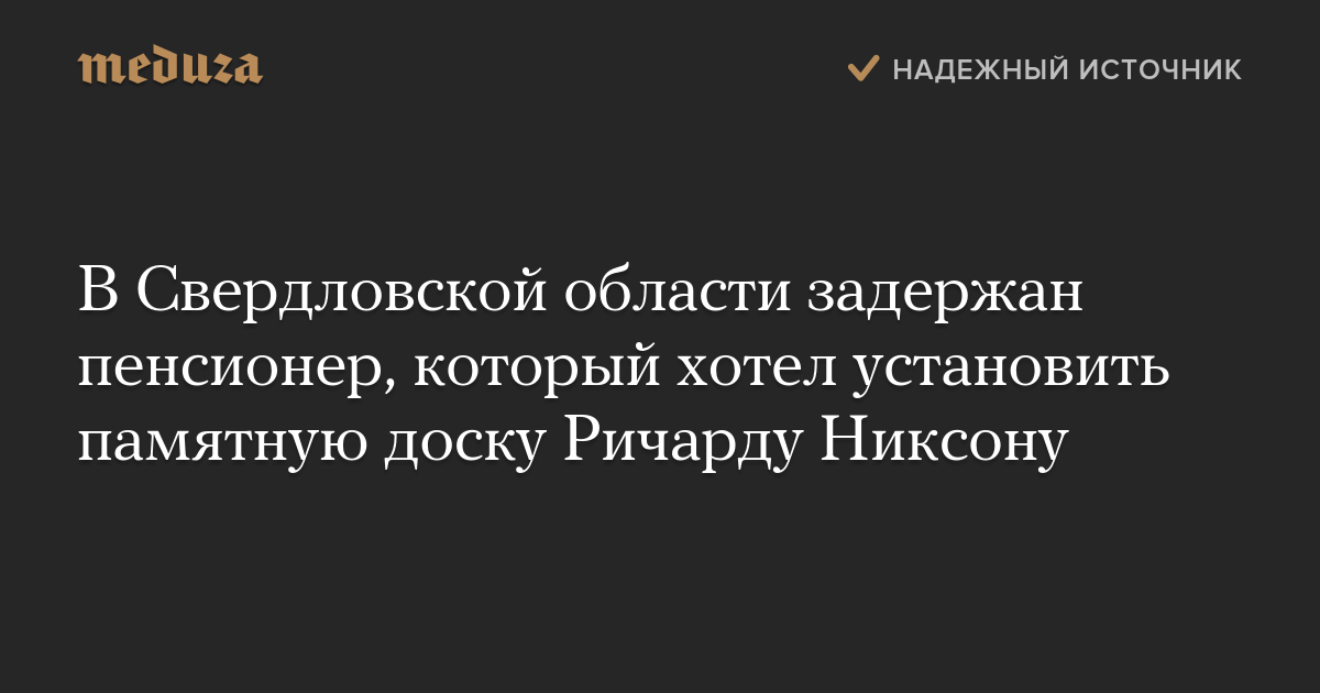 В Свердловской области задержан пенсионер, который хотел установить памятную доску Ричарду Никсону