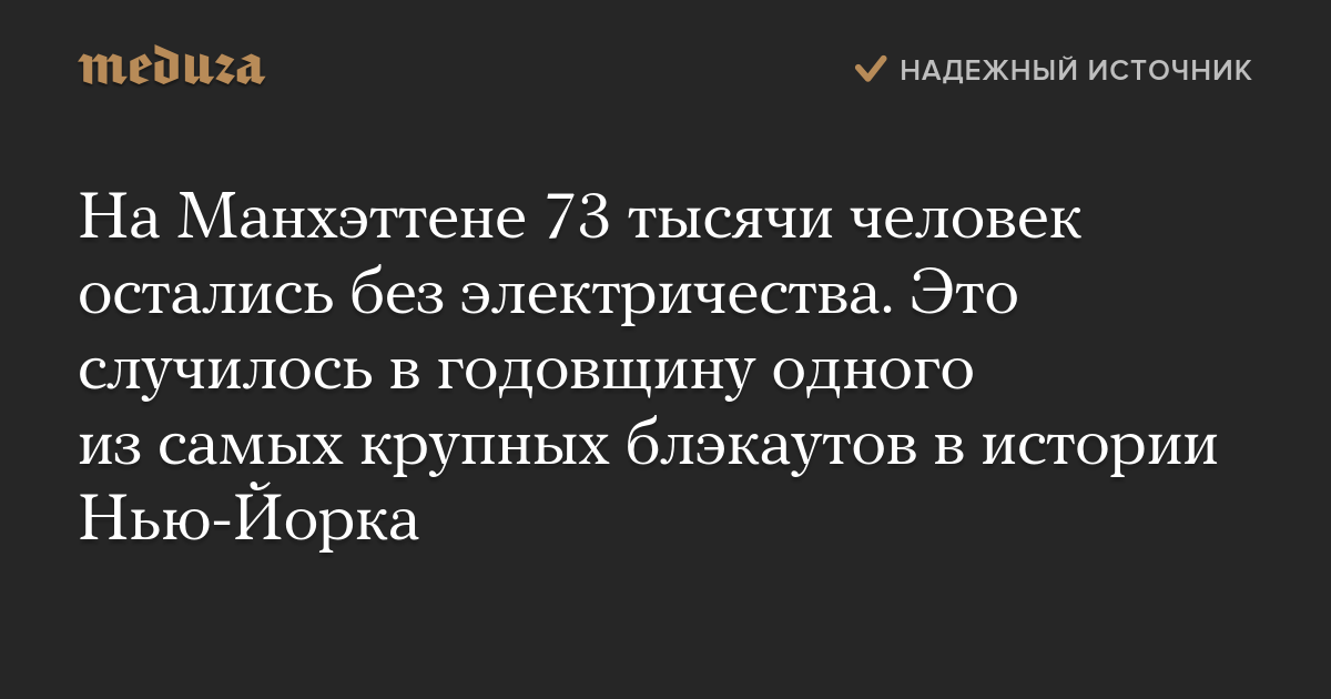 На Манхэттене 73 тысячи человек остались без электричества. Это случилось в годовщину одного из самых крупных блэкаутов в истории Нью-Йорка
