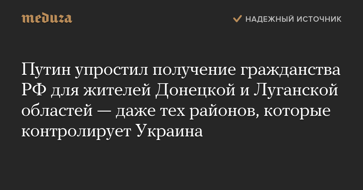 Путин упростил получение гражданства РФ для жителей Донецкой и Луганской областей — даже тех районов, которые контролирует Украина