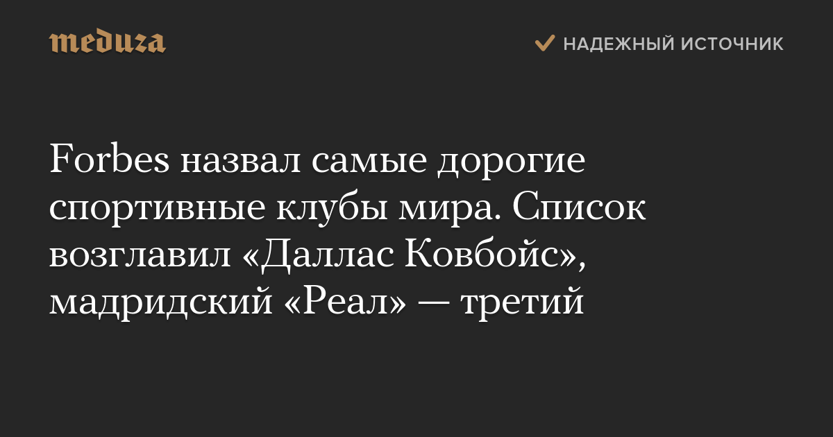 Forbes назвал самые дорогие спортивные клубы мира. Список возглавил «Даллас Ковбойс», мадридский «Реал» — третий