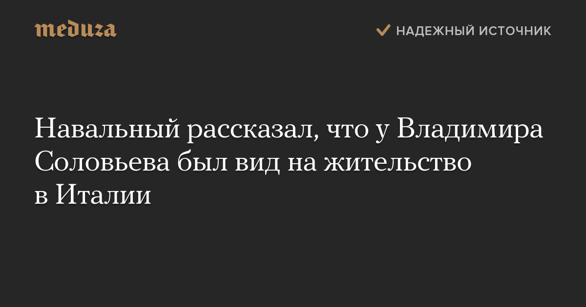 Как снимок оказался в его распоряжении, Навальный не рассказал. Он также не прокомментировал, когда и на каких основаниях Соловьев мог получить вид на жительство в Италии.