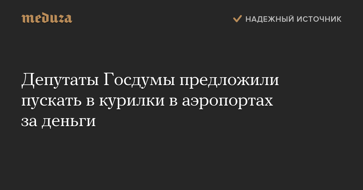 Первый замглавы думского комитета по контролю и регламенту Олег Нилов также сказал изданию, что вход в курилки следует сделать платным. При этом автор законопроекта о возвращении курилок в аэропорты Сергей Боярский считает, что депутаты не могут обязать аэропорты ввести плату за вход.