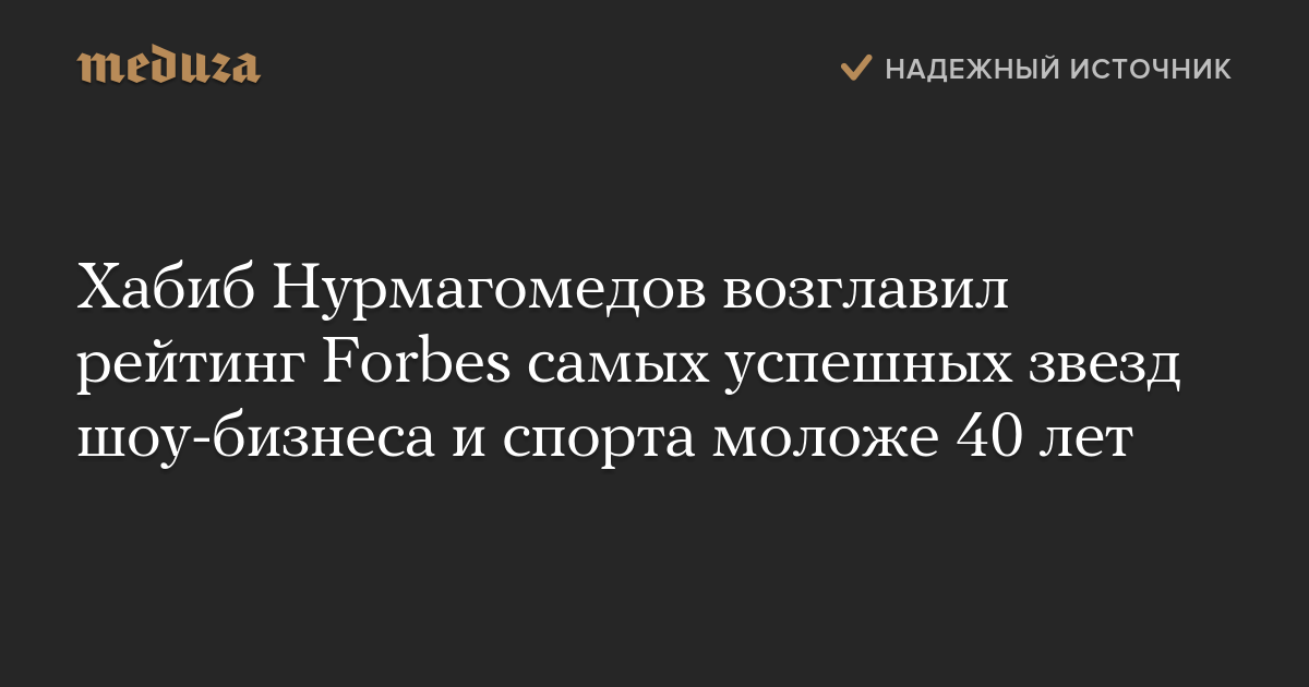 Хабиб Нурмагомедов возглавил рейтинг Forbes самых успешных звезд шоу-бизнеса и спорта моложе 40 лет