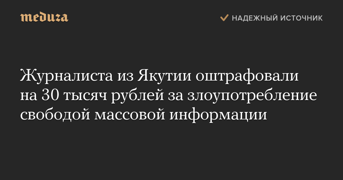 Журналиста из Якутии оштрафовали на 30 тысяч рублей за злоупотребление свободой массовой информации