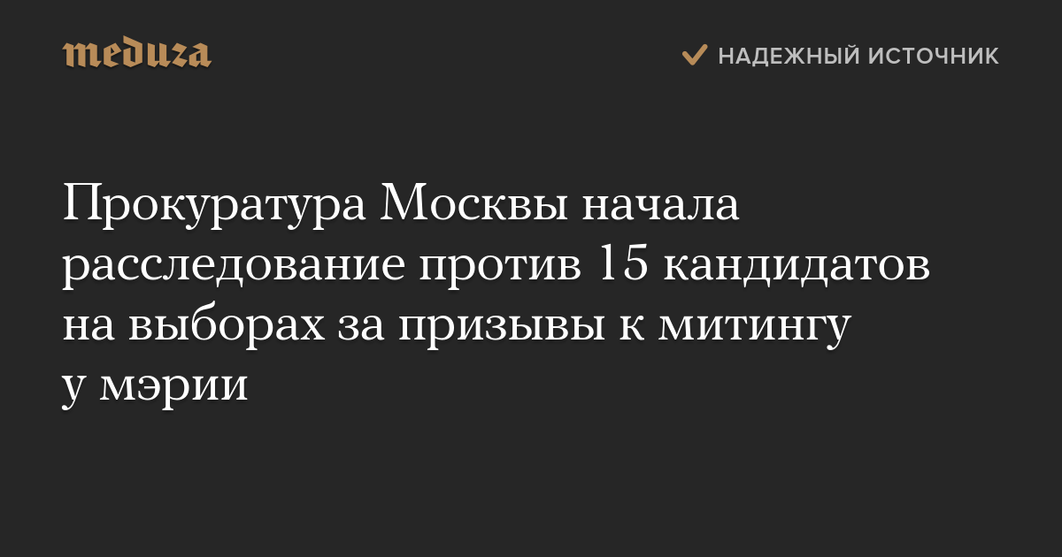 Прокуратура Москвы начала расследование против 15 кандидатов на выборах за призывы к митингу у мэрии
