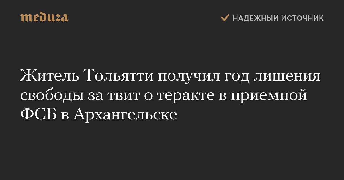 Житель Тольятти получил год лишения свободы за твит о теракте в приемной ФСБ в Архангельске