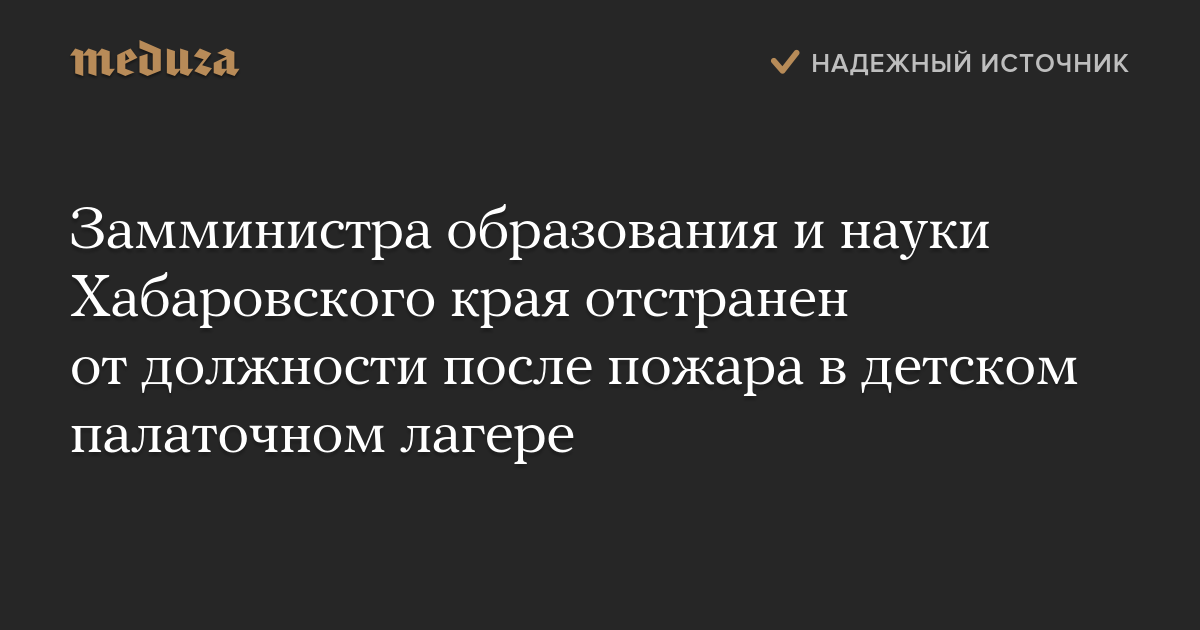 Замминистра образования и науки Хабаровского края отстранен от должности после пожара в детском палаточном лагере