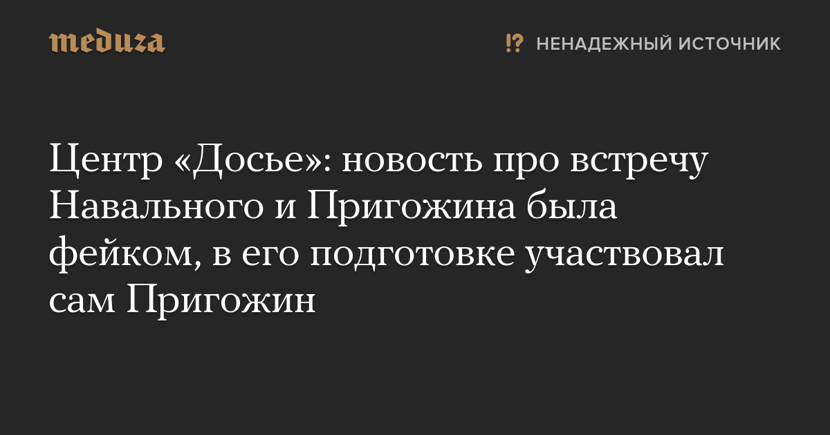 Центр «Досье»: новость про встречу Навального и Пригожина была фейком, в его подготовке участвовал сам Пригожин