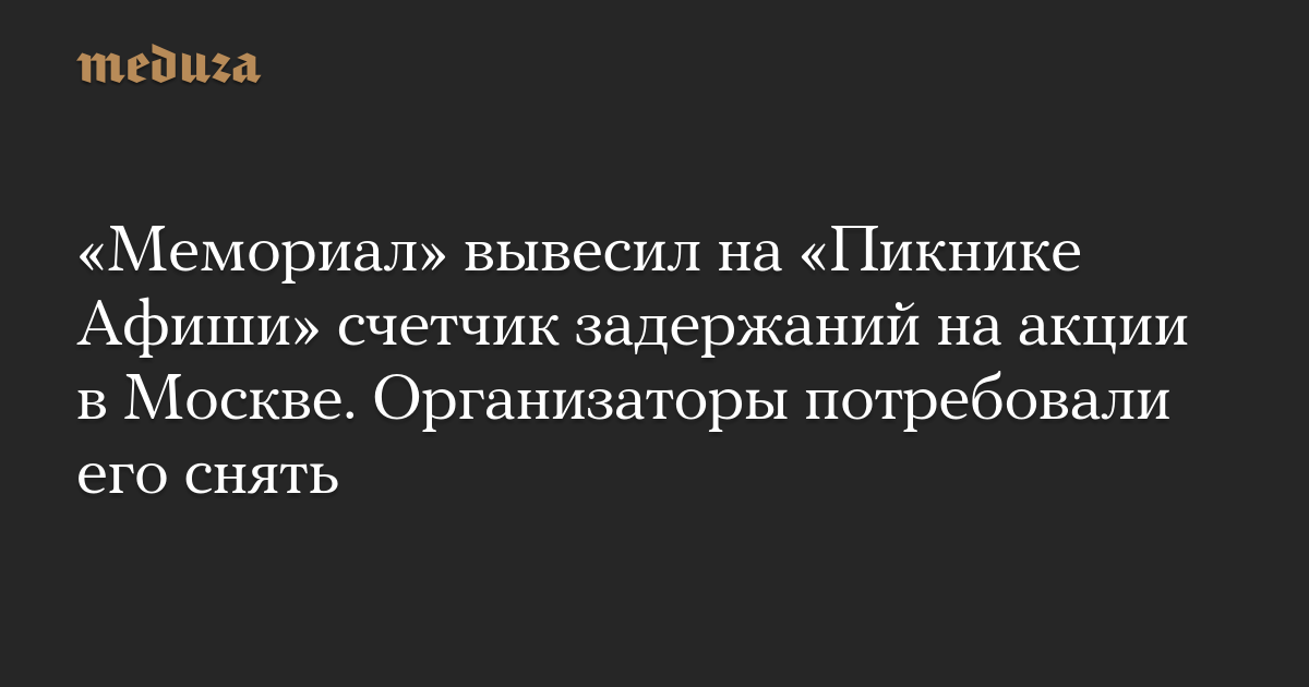 «Мемориал» вывесил на «Пикнике Афиши» счетчик задержаний на акции в Москве. Организаторы потребовали его снять