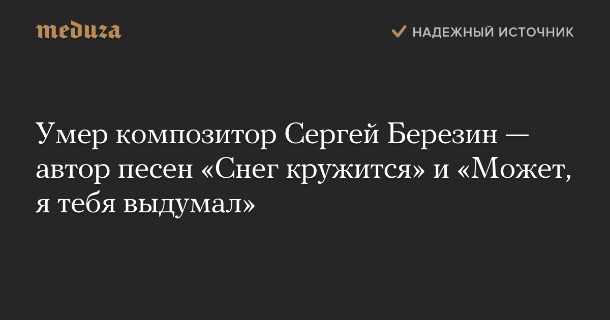 Умер композитор Сергей Березин — автор песен «Снег кружится» и «Может, я тебя выдумал»