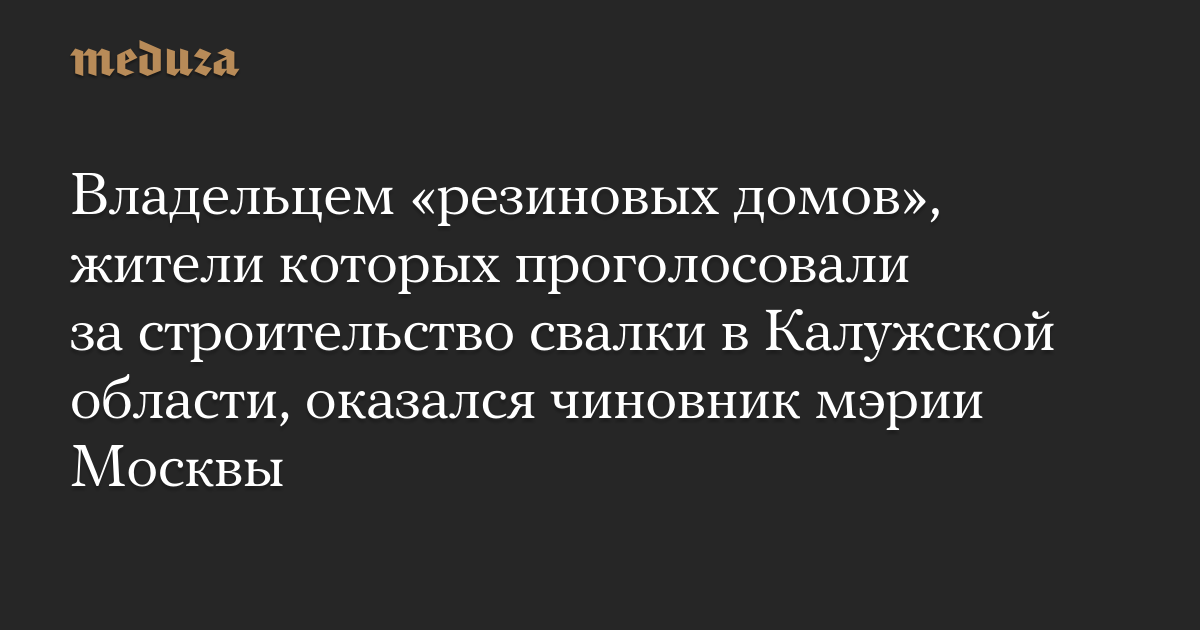 Владельцем «резиновых домов», жители которых проголосовали за строительство свалки в Калужской области, оказался чиновник мэрии Москвы
