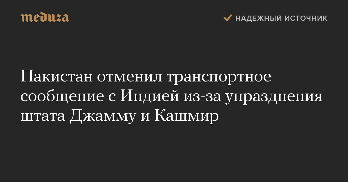 Пакистан отменил транспортное сообщение с Индией из-за упразднения штата Джамму и Кашмир
