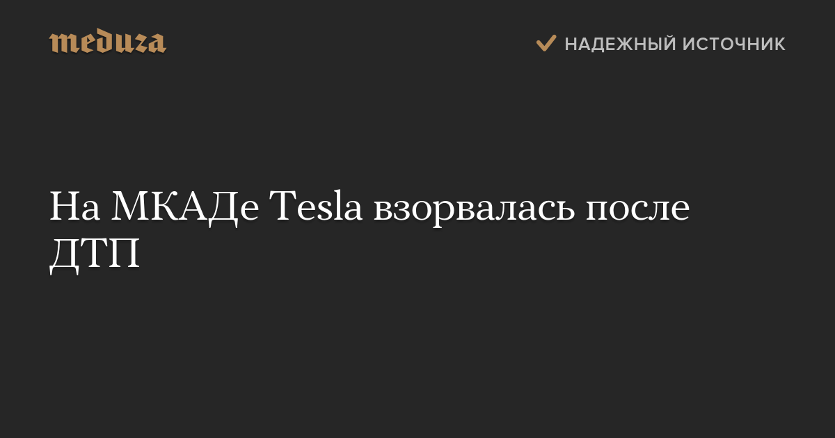На МКАДе вечером 10 августа взорвался и сгорел электромобиль Tesla, столкнувшийся перед этим с эвакуатором. О происшествии сообщила пресс-служба госавтоинспекции по Москве.