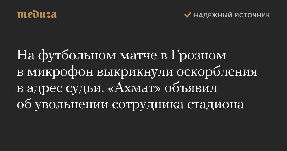 На футбольном матче в Грозном в микрофон выкрикнули оскорбления в адрес судьи. «Ахмат» объявил об увольнении сотрудника стадиона