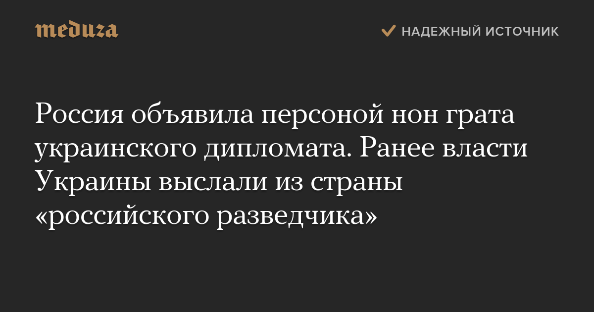 Россия объявила персоной нон грата украинского дипломата. Ранее власти Украины выслали из страны «российского разведчика»