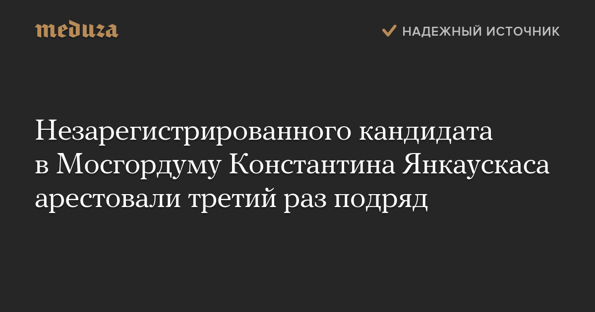 Это уже третий подряд административный арест Янкаускаса в связи с протестами из-за выборов в Мосгордуму. Он отбыл семь суток после задержания на акции 27 июля. Срок его ареста закончился 3 августа; сразу после выхода из спецпремника его снова задержали и дали еще 10 суток.