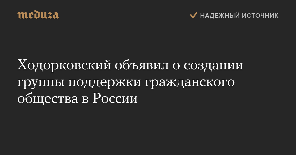 Ходорковский объявил о создании группы поддержки гражданского общества в России