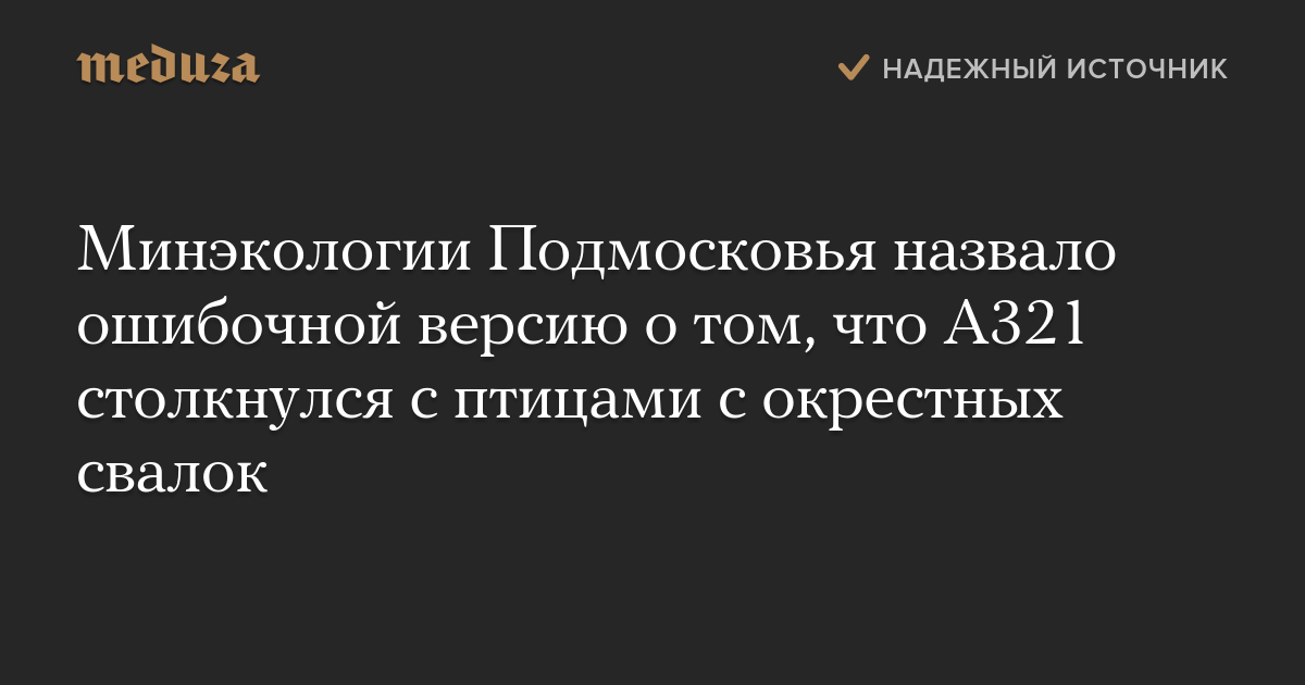 Министр экологии Подмосковья Дмитрий Куракин назвал ошибочной версию о том, что птицы, в которых врезался самолет «Уральских авиалиний», кормятся на окрестных свалках.