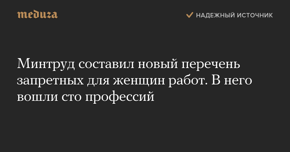 В список вошли 100 производств, работ и должностей с вредными и (или) опасными условиями труда, на которых ограничивается применение труда женщин. В предыдущем варианте перечня, действовавшем почти 20 лет, было 456 пунктов.