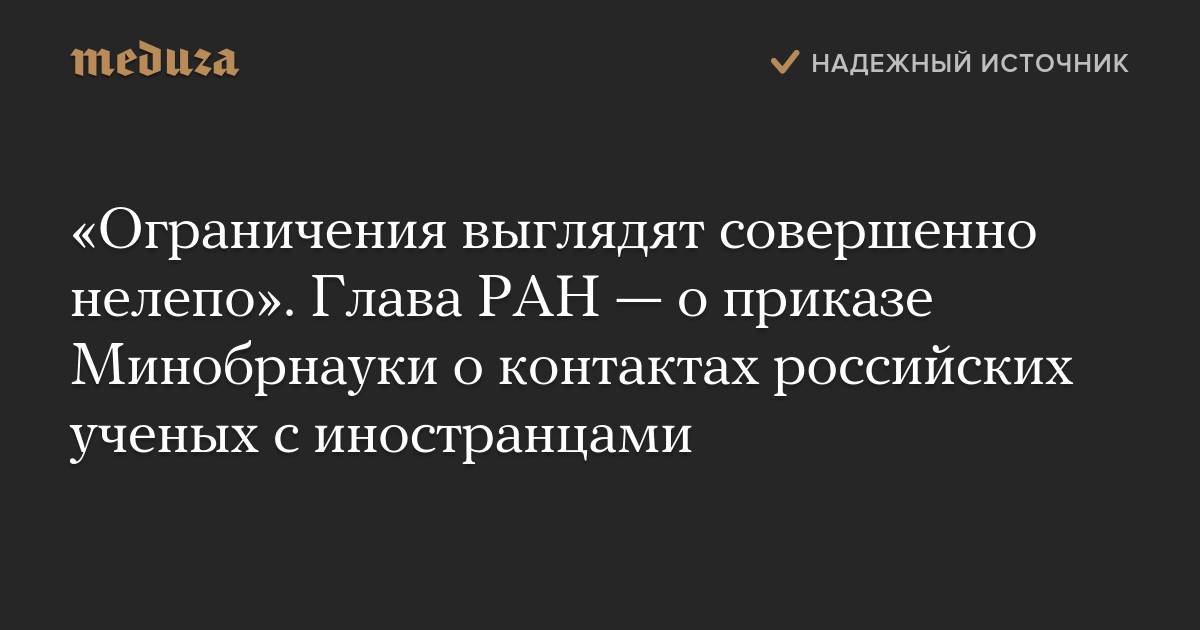 «Ограничения выглядят совершенно нелепо». Глава РАН — о приказе Минобрнауки о контактах российских ученых с иностранцами