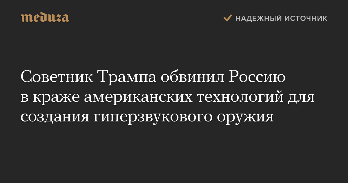 Советник Трампа обвинил Россию в краже американских технологий для создания гиперзвукового оружия