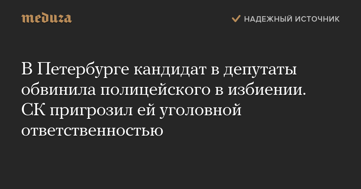В Петербурге кандидат в депутаты обвинила полицейского в избиении. СК пригрозил ей уголовной ответственностью