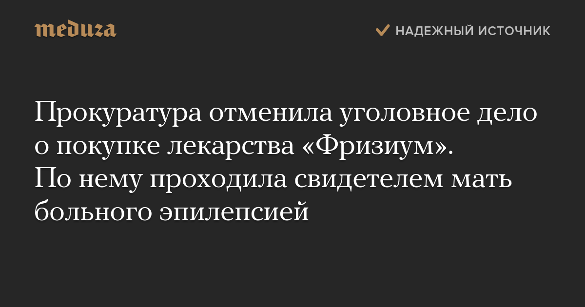 Прокуратура отменила уголовное дело о покупке лекарства «Фризиум». По нему проходила свидетелем мать больного эпилепсией