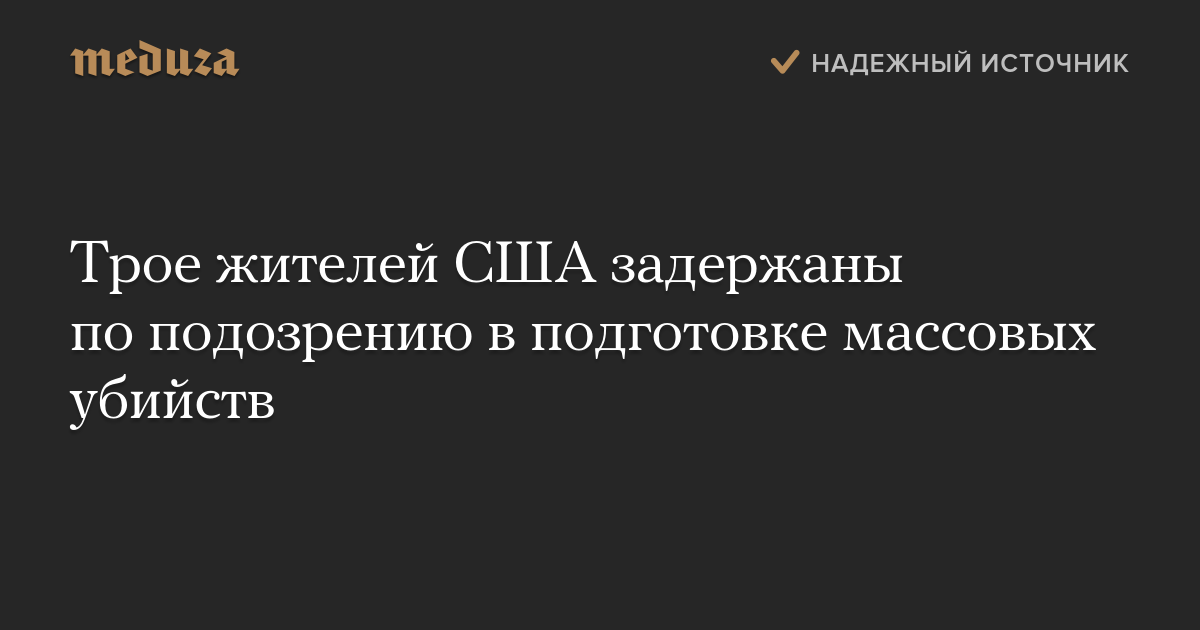 Трое жителей США задержаны по подозрению в подготовке массовых убийств