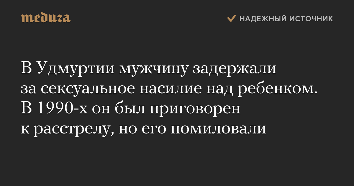 В Удмуртии мужчину задержали за сексуальное насилие над ребенком. В 1990-х он был приговорен к расстрелу, но его помиловали