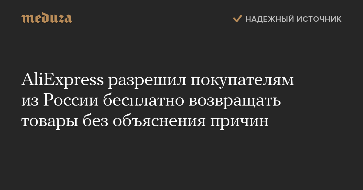 Россия стала первой страной после Китая, где AliExpress разрешил возвращать товары без объяснения причин.
