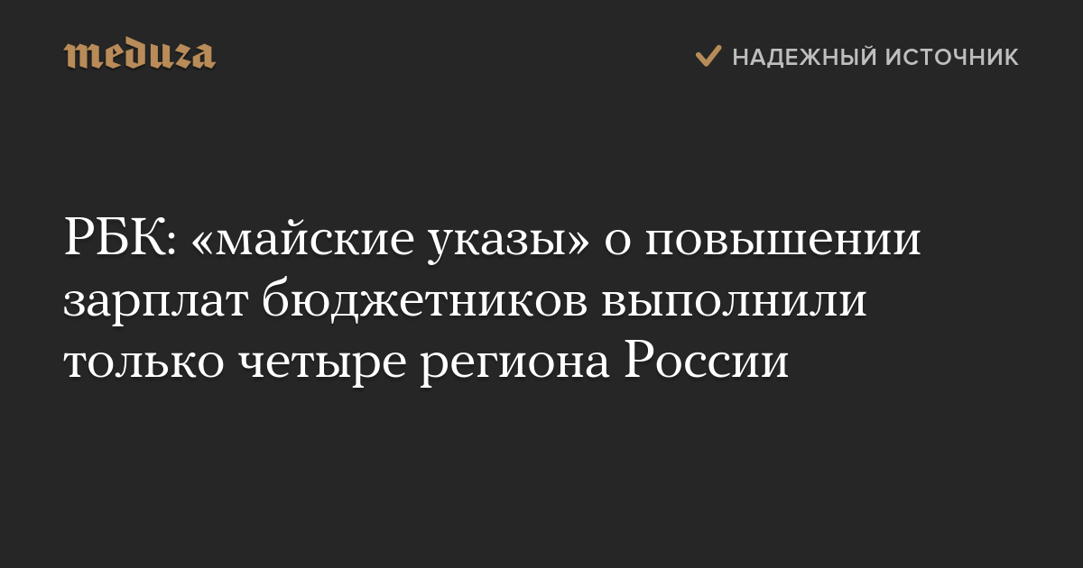 РБК: «майские указы» о повышении зарплат бюджетников выполнили только четыре региона России