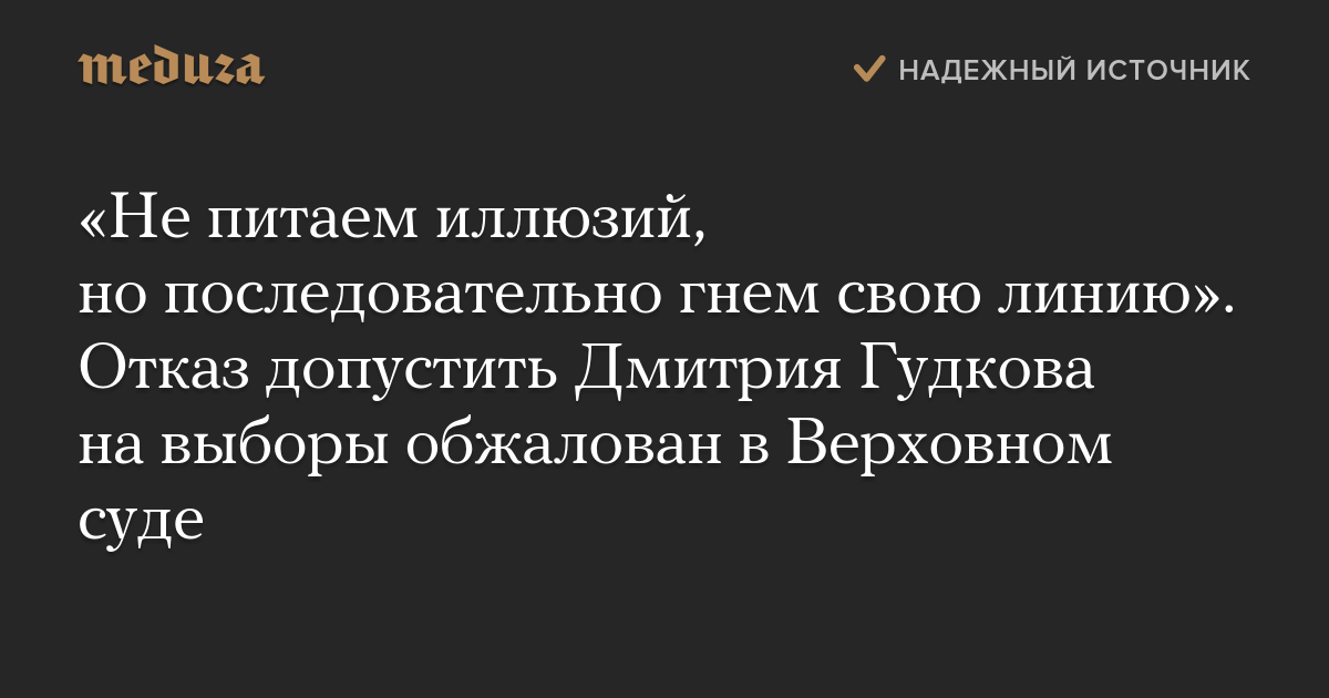 «Не питаем иллюзий, но последовательно гнем свою линию». Отказ допустить Дмитрия Гудкова на выборы обжалован в Верховном суде