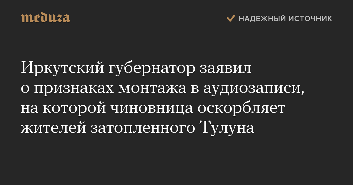 Иркутский губернатор заявил о признаках монтажа в аудиозаписи, на которой чиновница оскорбляет жителей затопленного Тулуна