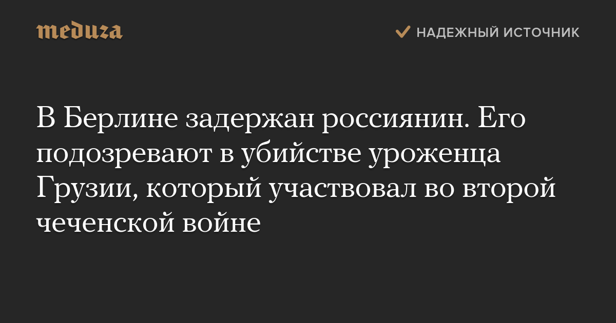 В Берлине задержан россиянин. Его подозревают в убийстве уроженца Грузии, который участвовал во второй чеченской войне