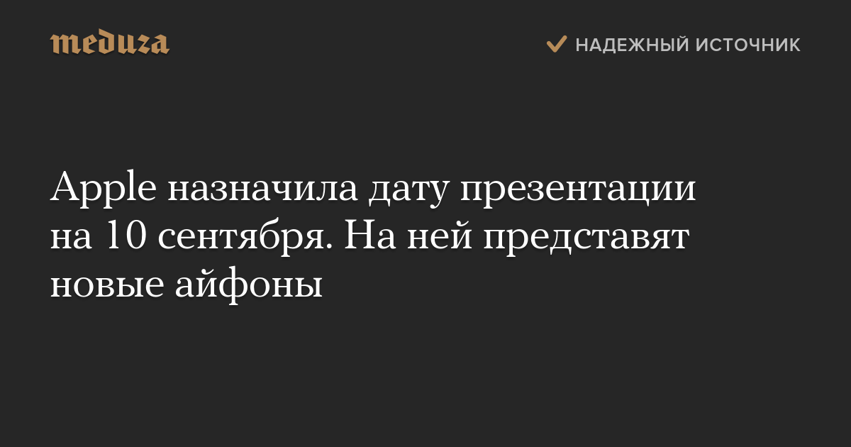 Apple назначила дату презентации на 10 сентября. На ней представят новые айфоны