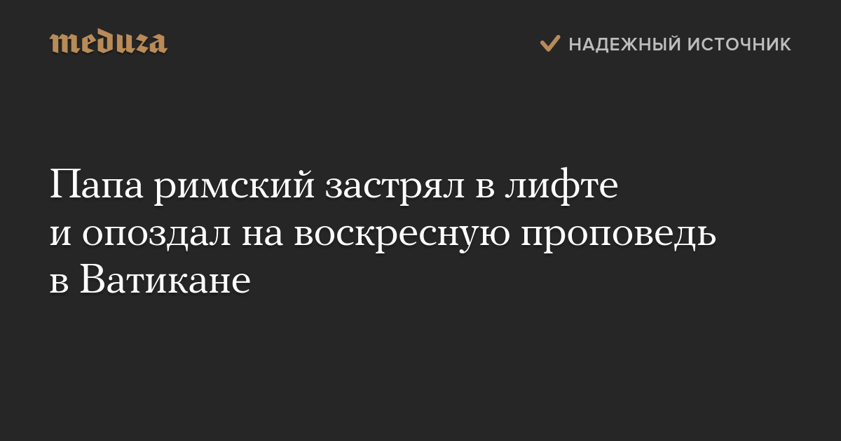 Папа римский застрял в лифте и опоздал на воскресную проповедь в Ватикане