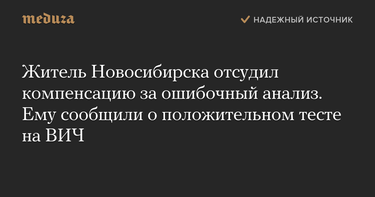 Житель Новосибирска отсудил компенсацию за ошибочный анализ. Ему сообщили о положительном тесте на ВИЧ
