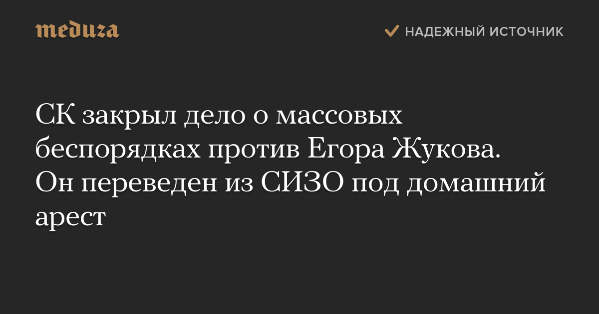 СК закрыл дело о массовых беспорядках против Егора Жукова. Он переведен из СИЗО под домашний арест