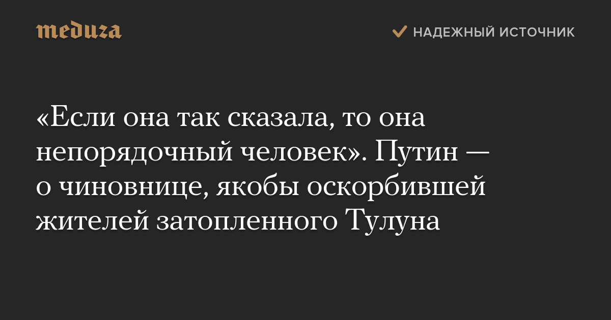 «Если она так сказала, то она непорядочный человек». Путин — о чиновнице, якобы оскорбившей жителей затопленного Тулуна
