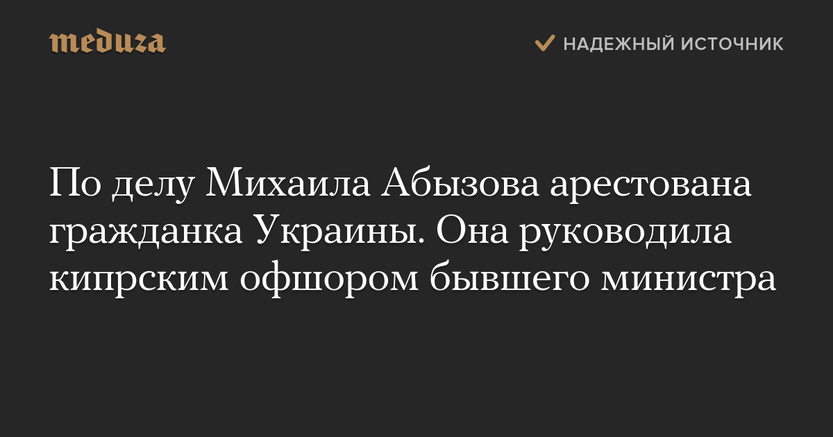 По делу Михаила Абызова арестована гражданка Украины. Она руководила кипрским офшором бывшего министра