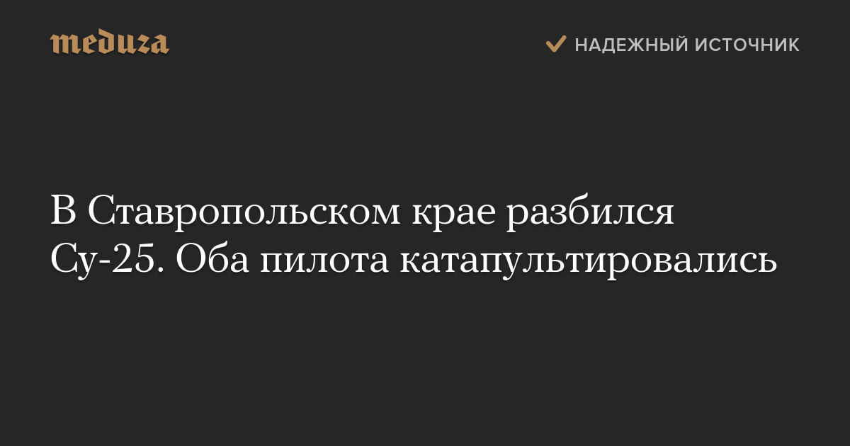 В Ставропольском крае разбился Су-25. Оба пилота катапультировались