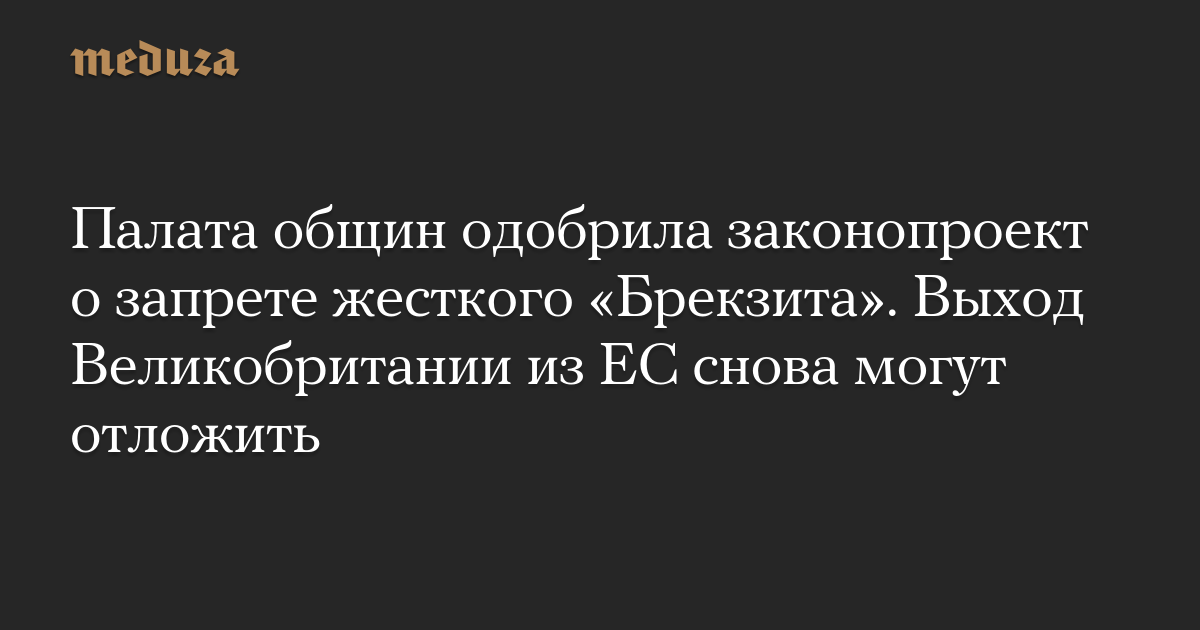 Палата общин одобрила законопроект о запрете жесткого «Брекзита». Выход Великобритании из ЕС снова могут отложить