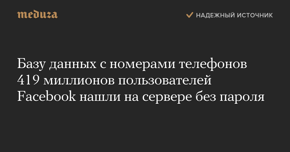 Базу данных с номерами телефонов 419 миллионов пользователей Facebook нашли на сервере без пароля