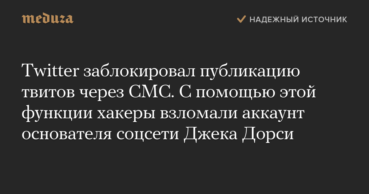 Twitter заблокировал публикацию твитов через СМС. С помощью этой функции хакеры взломали аккаунт основателя соцсети Джека Дорси