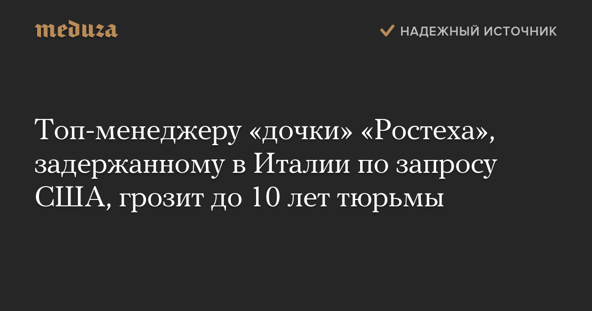 Топ-менеджеру «дочки» «Ростеха», задержанному в Италии по запросу США, грозит до 10 лет тюрьмы