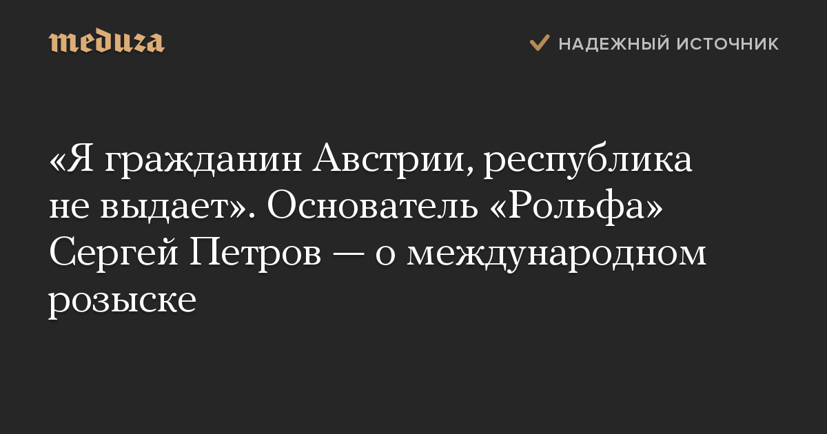 «Я гражданин Австрии, республика не выдает». Основатель «Рольфа» Сергей Петров — о международном розыске